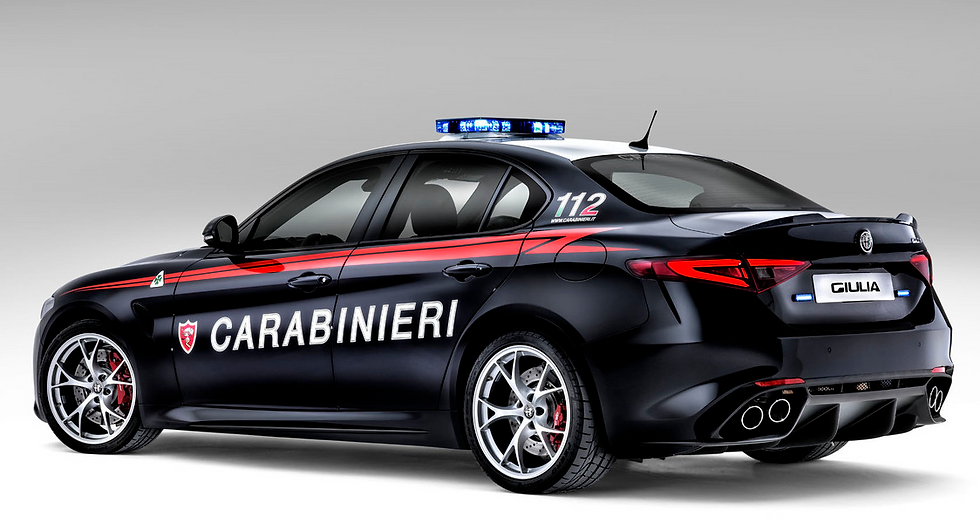 Alfa Romeo presented two special editions of its new Giulia Quadrifoglio high-performance sports sedan to the Italian national military police, the Carabinieri, on Monday morning.